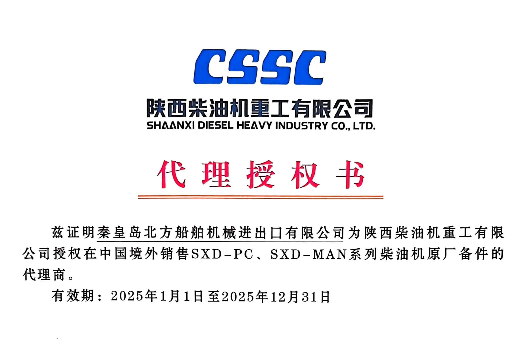 北方船舶成為陜柴重工簽訂備件代理授權(quán)商,北方船舶將能夠在國內(nèi)外銷售SXD-PC、SXD-MAN系列柴油機原廠備件,這不僅提升了北方船舶在電站和船舶配套市場的競爭力,也為客戶提供了更加可靠的產(chǎn)品來源和專業(yè)服務(wù)。